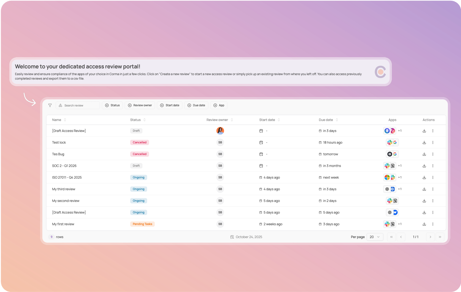 Note: Our access review module is in alpha version to collect initial feedback. It is still missing important elements such as notifications, recurring reviews, and others that will be implemented.
