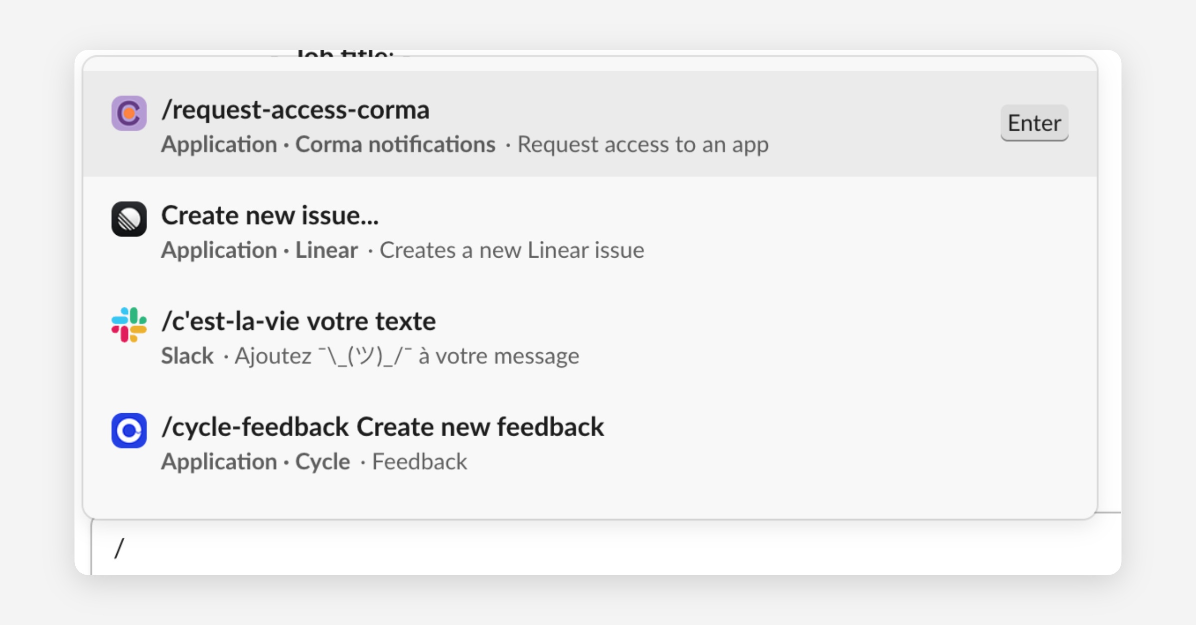 Type "/" then Click on /request-access-corma